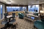 Incredible style and unbelievable views come together in the most panoramic digs at sea. (Up to 4 guests) Beds Two sets of two twin beds that convert to a Royal King bed One double sofa bed Size Stateroom: 839 sq. ft.